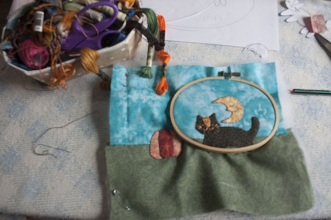 Hacer el bordado de las piezas aplicadas en la mini quilt.